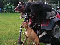 I could hear Honey’s barking getting further away so I assumed Kahu was running in the other direction. There were four huge boars circling a sow and they were all moving as a group. I thought big boars roamed on their own and fought with other boars for turf and sows. It was like they had never seen a dog or a human before and they weren’t scared at all. I gave Whiskey the command “When you’re ready – get ’em!” Just seconds later, he launched towards the closest boar and grabbed his ear. The other pigs freaked but they didn’t run away - they turned towards Whiskey and charged at him to help their mate. Whiskey let go and ran around the other side and bailed. No matter what, they were locals and they weren’t going anywhere. Whiskey has caught big pigs before on his own - even a 200+lber - but a mob of them? Thinking about it now, I reckon he was intimidated by the number of big ones we found because after that, he wouldn’t go in and hold. He just looked at me as if to say “You go in and grab ’em!” It was like a Mexican standoff. I thought about it for a while and I realised they had a nice warm bit of bush with plenty of food and a healthy keen sow - they weren’t going to bugger off too far. One of the advantages of not having too many dogs is less pressure on the pigs. They don’t tend to run so easily. With time getting on, we had to get back home to scrub up and get Kahu and his pig to the weigh in before 5pm so I called Whiskey to me and put him on a rope and we backed off. Still, the pigs just stayed there, not phased at all. I told Kahu we were running out of time so we’d come back tomorrow with some backup and get the biggest one. All the way back, Kahu kept saying “Imagine if we’d caught the biggest one, eh?” I said to him “That would have been cheating unless you went in and grabbed it!” We got home just in time to jump in the van and take Kahu’s pig to the weigh in, with support from his nana and poppa, mum and dad and my brother.