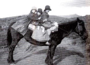 First plane to land at Okiwi in the 1930's Going to school from Okiwi to Port FitzRoy.  From left: