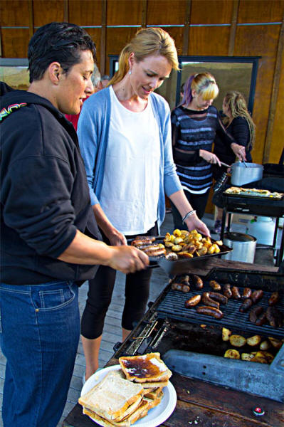 “The fire itself is huge, but you don’t really get a sense of scale until you see the helicopters in the sky above it – they look like ants. It’s very emotional – one lady was watching the fire’s onslaught and was just sobbing.” While her kids are being kept away from danger, Petra is keeping her eyes and ears open to ways she can help. So far that’s included making meals for the firefighters and working with the community, who are fighting for their island. A makeshift “mess” has been set up at the Claris Sports Club by local charity the Aotea Family Support Group, to help feed the volunteers. “There are two important groups here: the people who are fighting the fire and the people who are resourcing the firefighters,” explains Petra. While some supplies are on their way from the mainland, it’s the locals who are digging deep to look after the firefighters. “Local businesses and the food store have donated food, staff and supplies for people evacuated from their homes, and the sports club have dinner for 70 firefighters organised.”