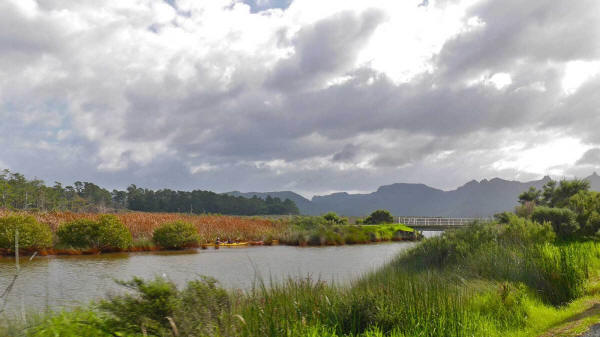 After all that walking, what better way to relax than in a natural hot spring? Kay told me the Kaitoke springs are the place to go, especially in the off-season when it’s colder and you need to warm up, so I went to check them out. The footpath takes you through a lush, green tunnel – an overhead canopy of ferns, silver barked trees and palms. You walk for about thirty minutes along a well-maintained track – it’s the first time I’ve seen a path advertised as suitable for strollers or pushchairs! Part of the walk is on raised decking, crossing the wetlands where, if you’re lucky, you can catch the cry of the rare fern bird.