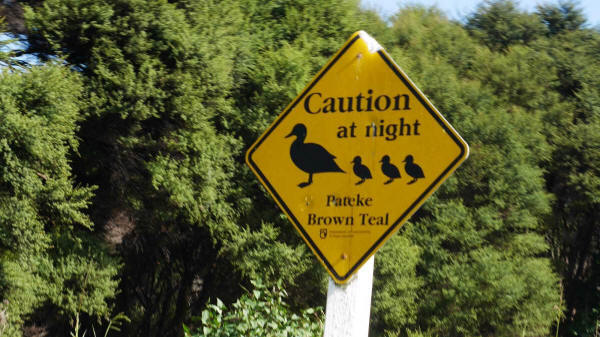 Many visitors come for the walking and they want information on the tracks. “There are easy walks for people who aren’t too fit, walks that will give you views, or take you to water holes. Just go as far as you can manage then come back,” she smiled. Susie Stokes leads parties of mainland school children on walks to experience the views and wildlife. She told me the tracks can be pretty steep and mountainous, but are still good to walk on. And of course, the scenery is impressive. “You can see from coast to coast at some spots,” she told me. “There’s lots of bird life too, including black petrels, which look like huge blackbirds that fish out at sea.” And there are the local pateke ducks, which are endangered. Only a few thousand pairs are left in the wild, the majority of them living on Great Barrier Island. “They’re like a normal duck but smaller and darker,” says Susie adding, with a touch of sadness, “They’re really friendly, which is why they get eaten so much. They’re quite chilled out.” As you drive, you’ll see road signs warning you to watch out for the rare ducks.