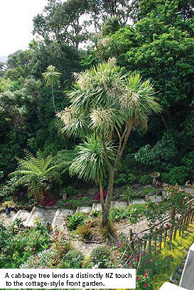 we knew it, a garden was evolving,” says Jenny with a smile. The garden was probably inevitable, despite Jenny's avowal. She had been the gardener at Clifton Station in the Hawkes Bay for 18 years and once a gardener, always a gardener. Now there’s not blade left of that once grassy slope. At the front of the house, it’s been transformed into a tapestry of flower and foliage colours and textures, backed by roses climbing on a rustic fence built with weathered battens the couple brought with them to the island.